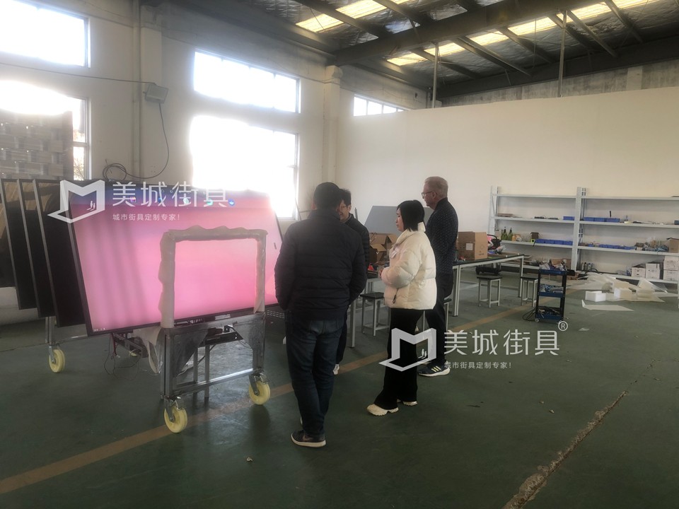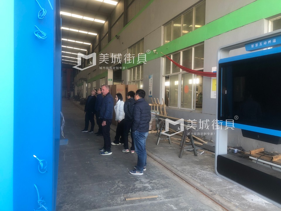 2023.11.28日,國外(wài)友人蒞臨我公司項目考察,參觀了候車亭、智能充電座椅、垃圾房等設施,經過洽談,雙方達(dá)成了合作,下單成功。